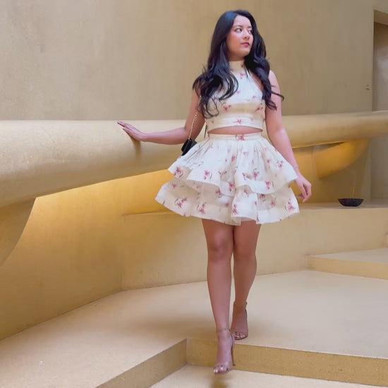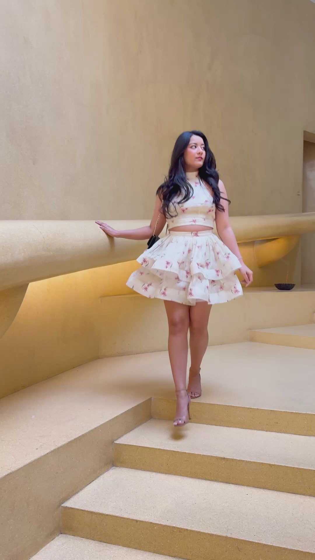 A true SASH bestseller, , the Anemone dress is Crafted from a premium linen blend in a one-of-a-kind floral print, the set pairs a sculpted halter top with a statement skirt. The top features a halter neckline secured with a delicate button, a graceful tie at the back, and a cut-out detail at the back that hints at allure while keeping the fit effortless. Its voluminous two-layer skirt with crinoline and airy feel create a weightless, romantic silhouette and enhances femininity, while the exquisite fit captivates with timeless beauty. Prepare for admiring glances and endless compliments, this dress ensures you’ll never go unnoticed.