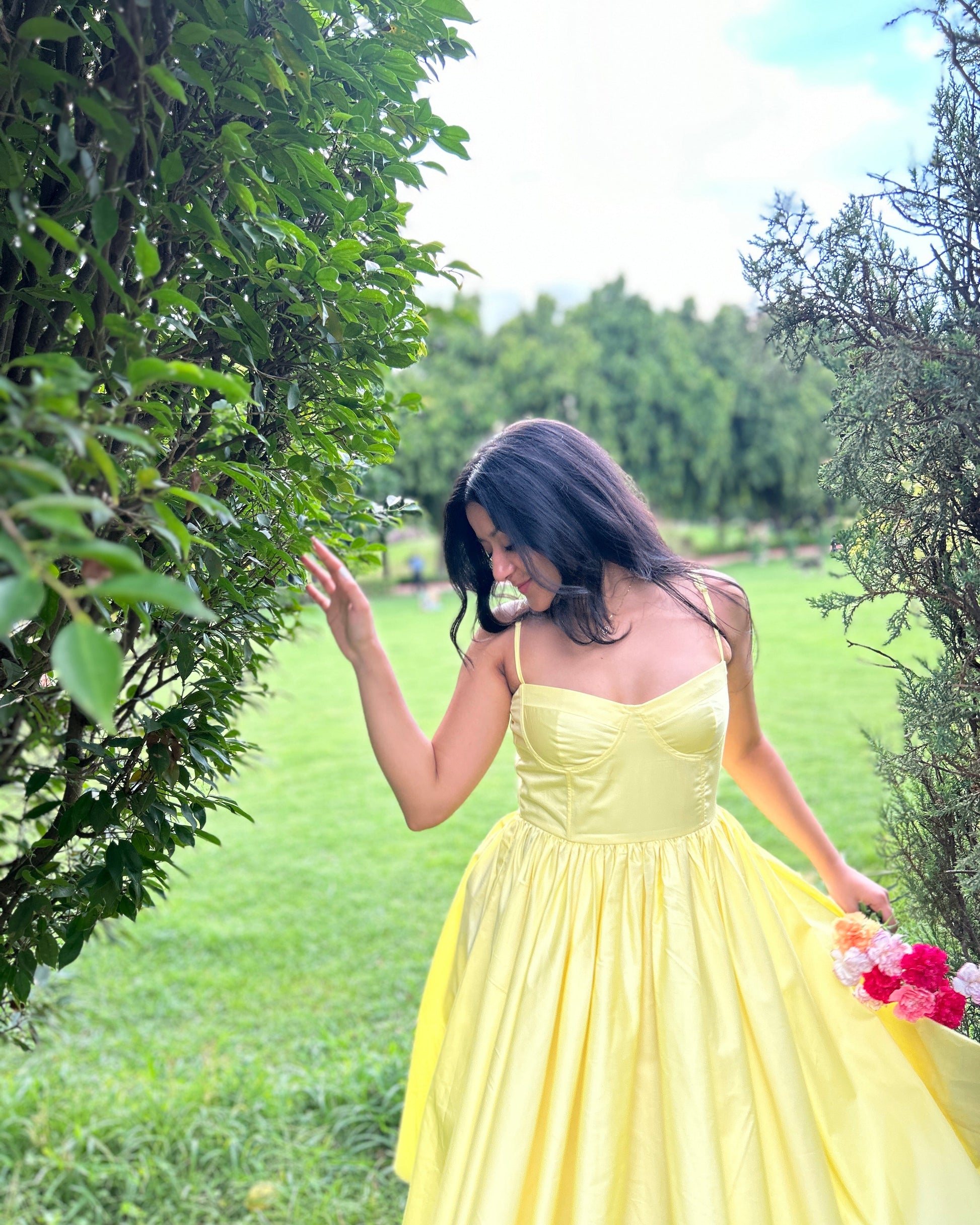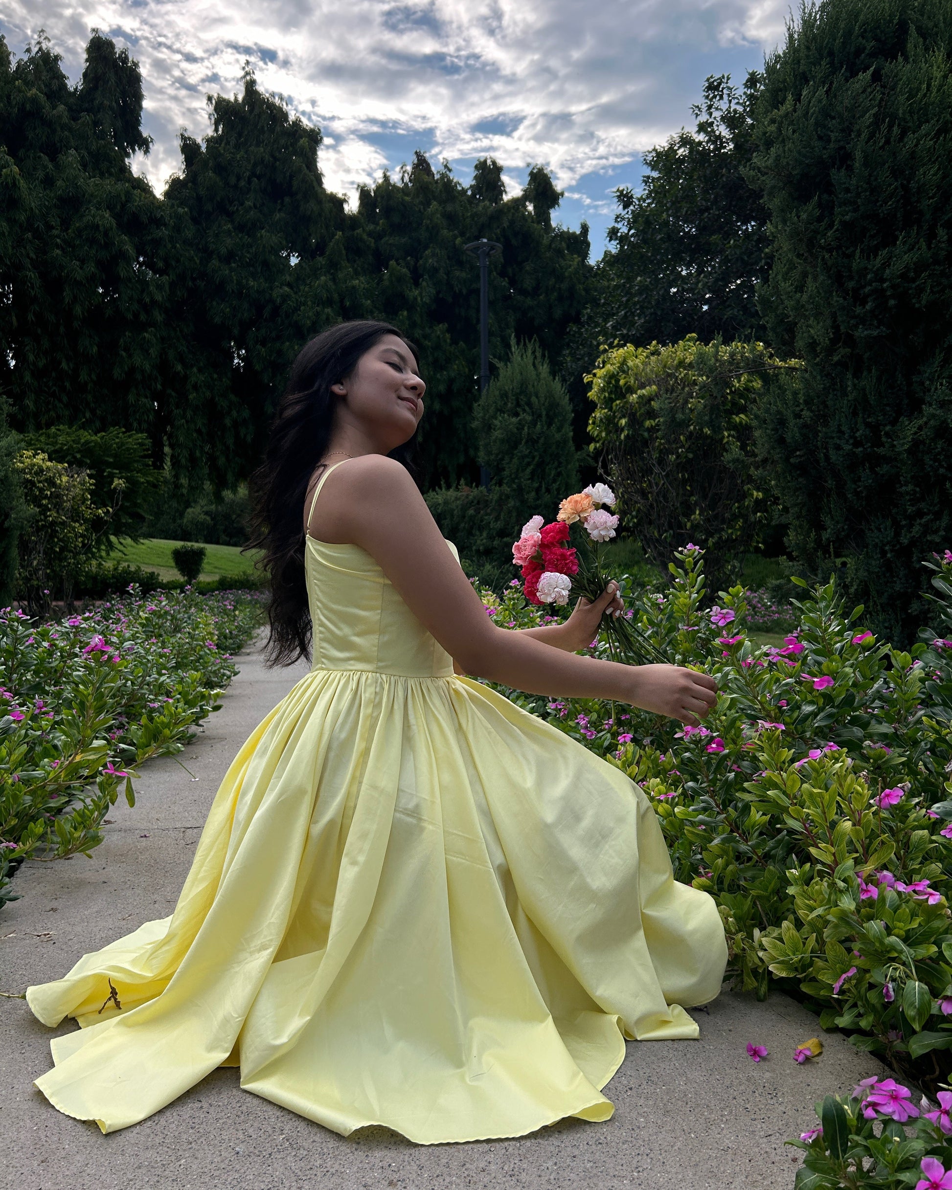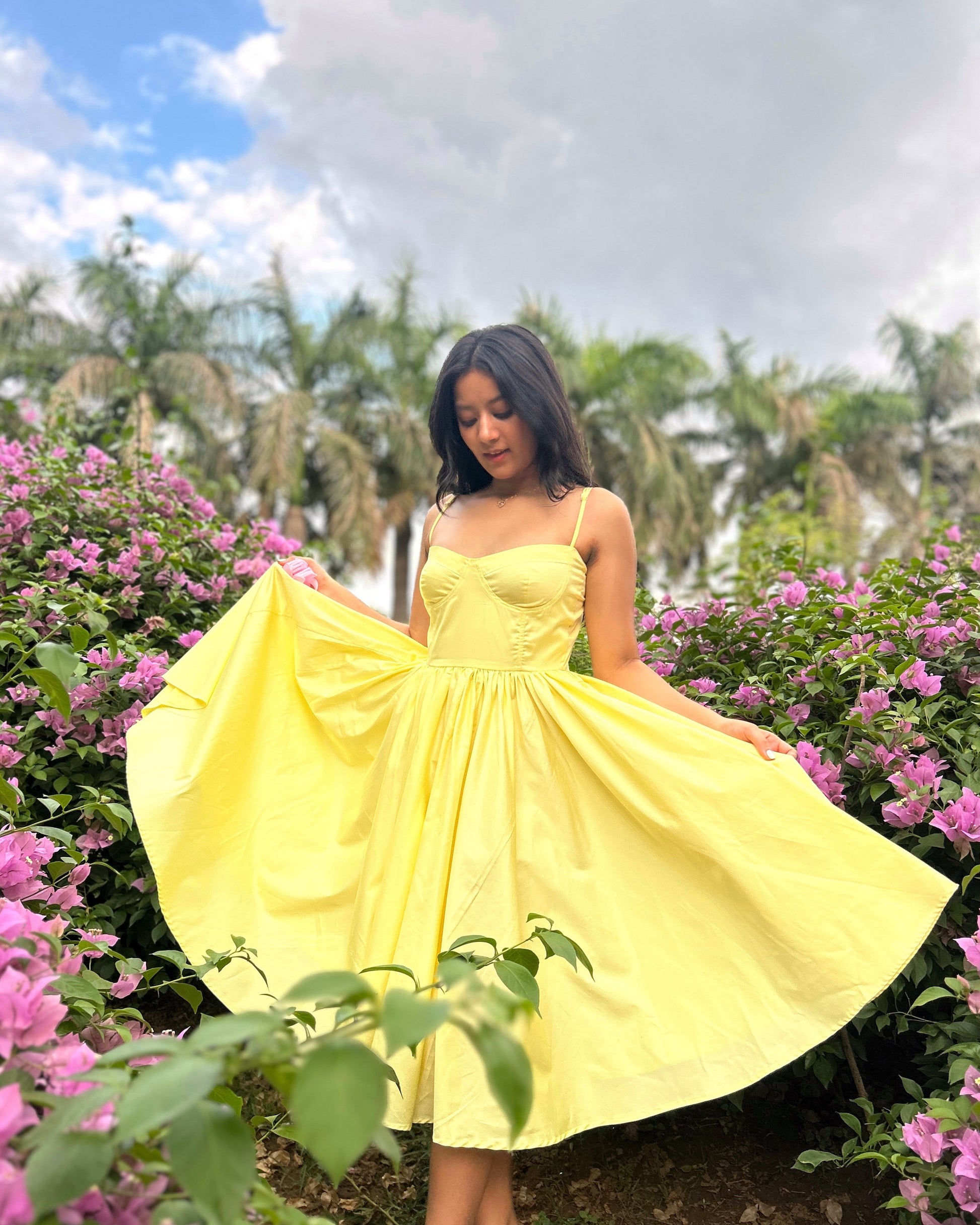 A stylish and versatile mid-length dress in the trending color of the season. This dress features a convenient bustier top with pockets, adding a touch of functionality to its chic design. The adjustable straps ensure a perfect fit, allowing you to customize the dress to your unique style and body shape. Whether you're heading out for a casual day of running errands or a fun night out with friends, this dress is the perfect choice for any occasion. Its trendy color and practical details make it a must-have piece for any fashion-forward wardrobe.